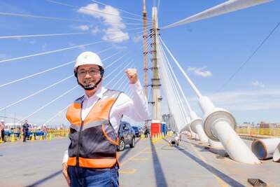 至今記得2019年初第一鏟土的激動心情,從動工到主橋塔基礎完成、兩段橋面版吊裝,今年3月淡水端閉合、7月主橋塔結構完整、9月合龍,我有幸參與每個關鍵時刻。看著鋼索與橋面一段段成形,像一個夢想逐漸長出骨架與靈魂。