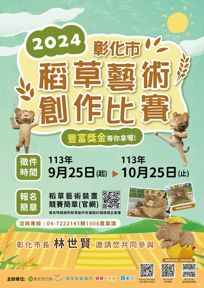 五、「彰化市花漾Chill」稻草藝術裝置競賽內容詳見簡章(如附件)。